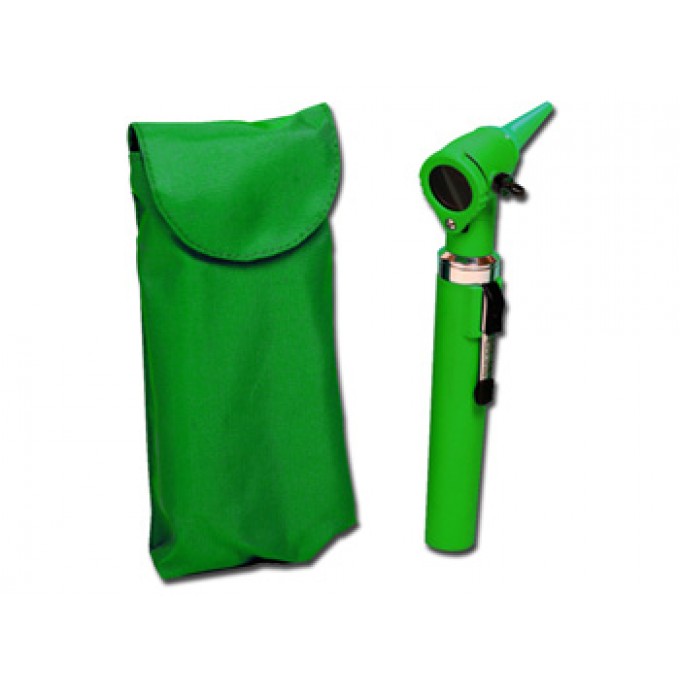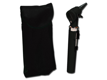 Otoscop profesional din material plastic cu bec halogen extraluminos, prevazut cu sistem de transmisie a luminii prin fibra optica.