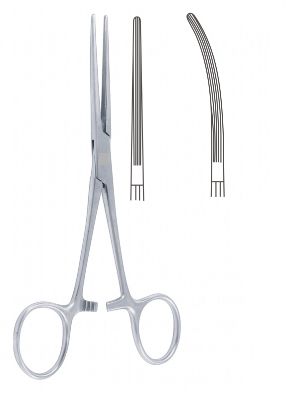 Pensa hemostatica Bainbridge este un instrument chirurgical cu lame lungi si striatii longitudinale.