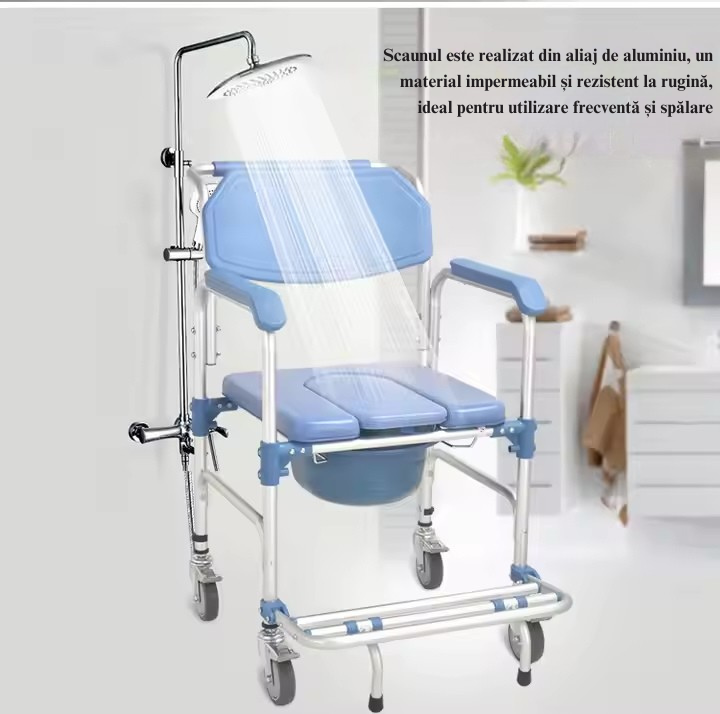 Scaunul multifuncțional de toaletă și duș, fabricat din aluminiu anodizat, este soluția ideală pentru îngrijirea persoanelor cu mobilitate redusă sau dizabilități. Proiectat pentru a oferi siguranță, confort și ușurință în utilizare, acest scaun este potrivit pentru uz casnic, în centre de recuperare sau unități medicale.