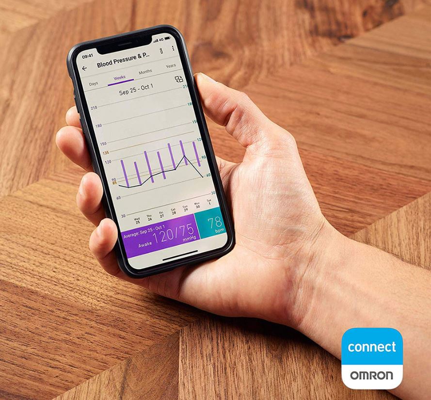 Tensiometrul OMRON M7 Intelli IT – cu functie AFIB (detectarea fibrilatiei atriale), cu Bluetooth, face parte din noua generatie de tensiometre inteligente ce combina tehnologii avansate cum ar fi manseta „Intelli Wrap”, utilizarea de aplicatii iOS sau Android, precum si Bluetooth pentru conectarea la un SmartPhone. De asemenea, permite urmarirea evolutiei valorilor tensionale cu ajutorul unui telefon SmartPhone utilizand aplicatia Omron Connect.